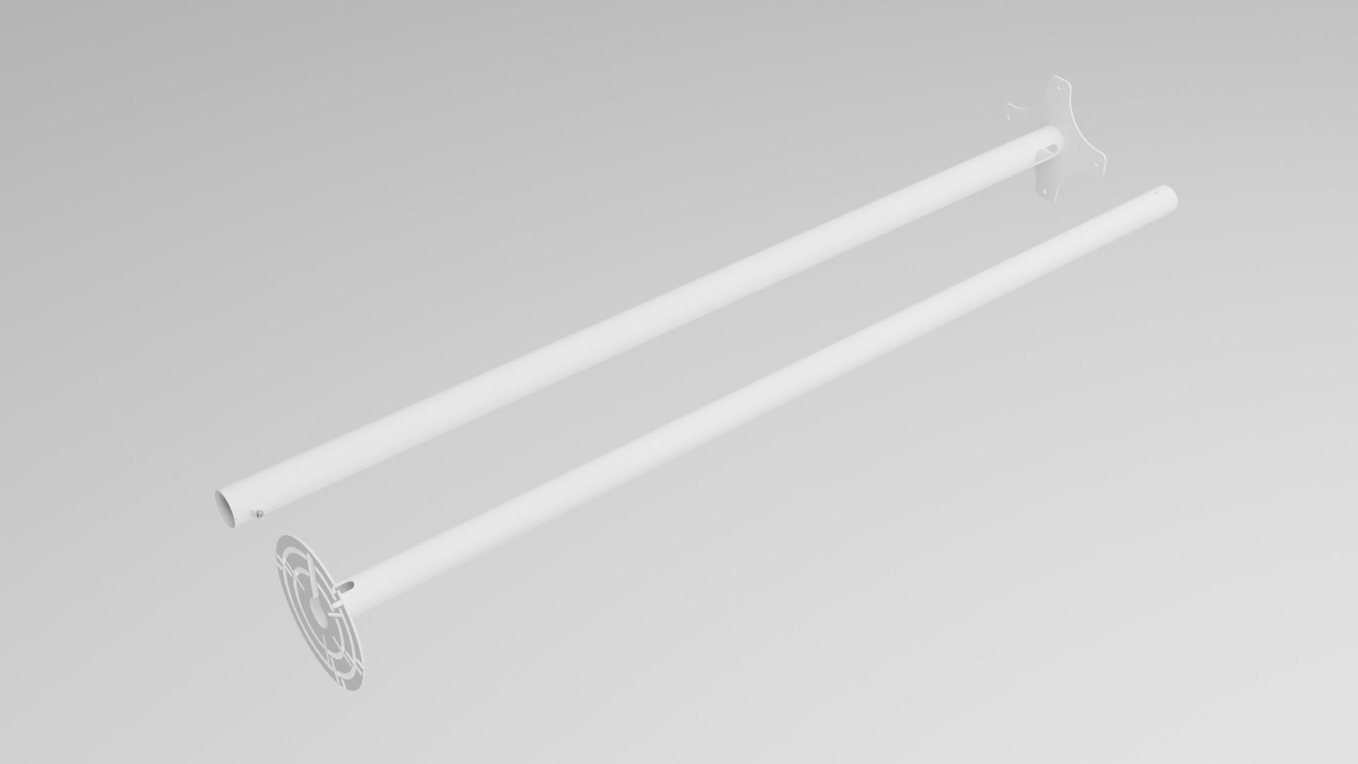 Justerbart väggfäste mellan 0,5 – 1m. Kabelförläggning inuti röret för en snygg installation.